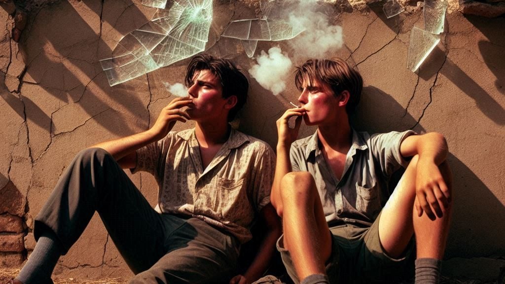 Sull’altro lato della piazza, Paolo e Giovanni fumavano in segreto, passandosi un mozzicone di sigaretta, protetti dalla calura e quasi nascosti dall’ombra di un imponente fico cresciuto nell’orto oltre il muro, il cui bordo coperto di cocci di bottiglia scoraggiava l’arrampicata.